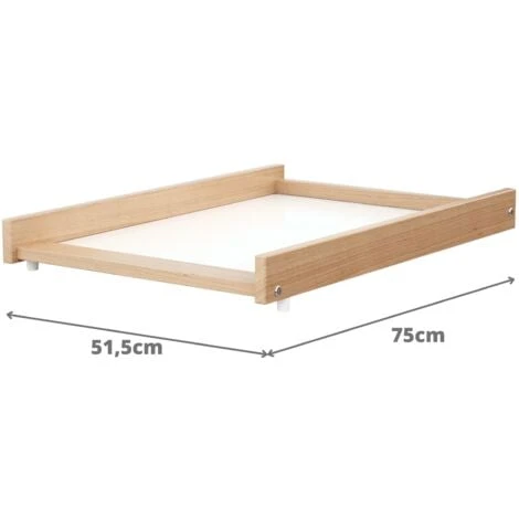 Plan à langer amovible. Simple et léger, ce plan à langer s’adapte sur tous les lits bébés de dimensions extérieurs de 62 à 65 cm. Résistant et maniable, il est très pratique pour les chambres aux dimensions réduites ou pour les grands-parents qui souhaitent compléter le lit de leurs petits-enfants sans perdre de place. Pour matelas à langer de 50×70 cm (non fourni). AT4 n’utilise que des vernis et des peintures acryliques (à base d’eau). Pour enfants jusqu’à 12 mois d’un poids maximum de 11kg. Ne jamais laisser un enfant sans surveillance sur une table à langer. Livré en Kit, à monter soi-même. . INFO LIVRAISON. Livraison en pied d’immeuble, pas dans les étages. Les colis peuvent être lourds et volumineux, assurez-vous d’être aidé pour la réception de la marchandise. Livraison sur rendez-vous. Complétez bien votre numéro de téléphone portable.
