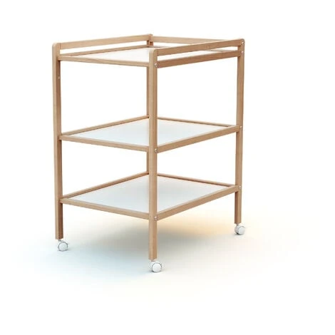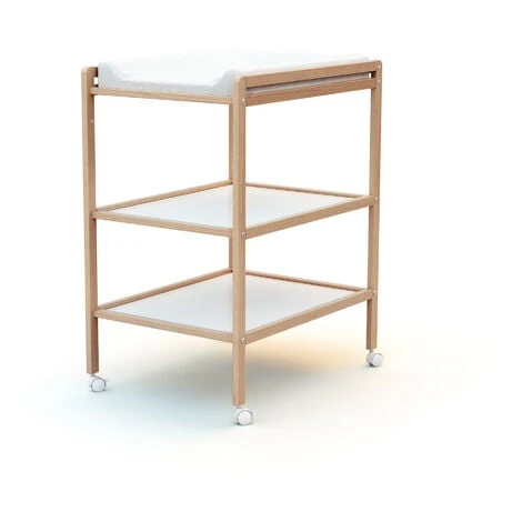 Table à langer 2 étagères. Une petite table à langer discrète mais très pratique. Grâce à ses quatre roulettes directionnelles munies de freins, elle se déplace facilement et s’intègre aussi bien dans la salle de bain que dans la chambre de bébé, quelles que soient ses dimensions. Ses deux tablettes de rangement permettent de garder à portée de main tout ce qu’il faut pour langer et habiller bébé. Pour matelas à langer 50 x 70 cm (non fourni). Équipée de 4 roulettes directionnelles munies de freins. AT4 n’utilise que des vernis et des peintures acryliques (à base d’eau). Pour enfants jusqu’à 12 mois d’un poids maximum de 11kg. Ne jamais laisser un enfant sans surveillance sur une table à langer. Livré en Kit, à monter soi-même. . INFO LIVRAISON. Livraison en pied d’immeuble, pas dans les étages. Les colis peuvent être lourds et volumineux, assurez-vous d’être aidé pour la réception de la marchandise. Livraison sur rendez-vous. Complétez bien votre numéro de téléphone portable.
