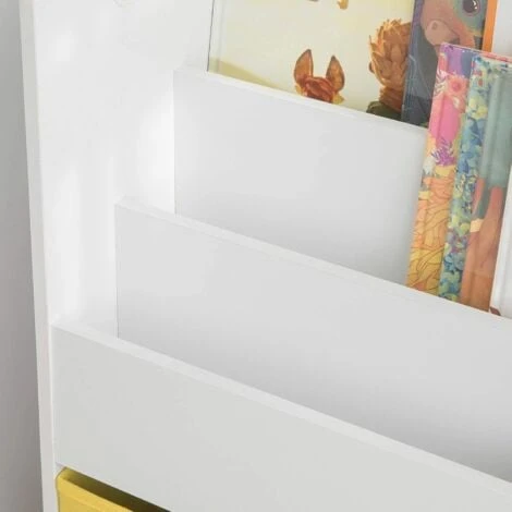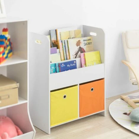 Bibliothèque Meuble De Rangement Pour Livres Et Jouets Étagère Pour Enfants Avec 3 Compartiments Et 2 Paniers Amovibles, SoBuy® KMB27-W