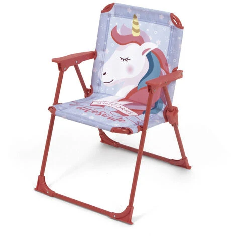 Chaise pliante avec bras 38x32x53cm de ZASKA-Licorne Personnages : Licorne Dimension : Hauteur 38 x Largeur 32 x Longueur 53 Poids : 903 grammesComposition : Toile 100% polyester / tubes métalliques / pièces en plastique Licence : Licorne