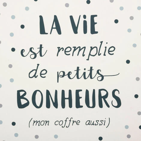 à‰lément de décoration à part entière, ce coffre séduit avec sa forme évasée, ses motifs pétillants et ses inscriptions.