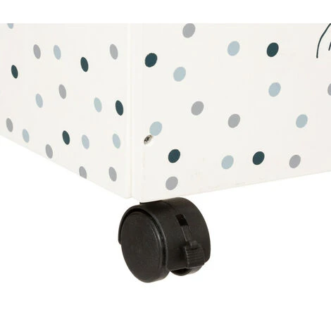 Conà§u en fibres de bois et pourvu de poignées, ce coffre de rangement reste pratique pour les enfants : il est équipé de quatre roulettes permettant de le déplacer facilement.