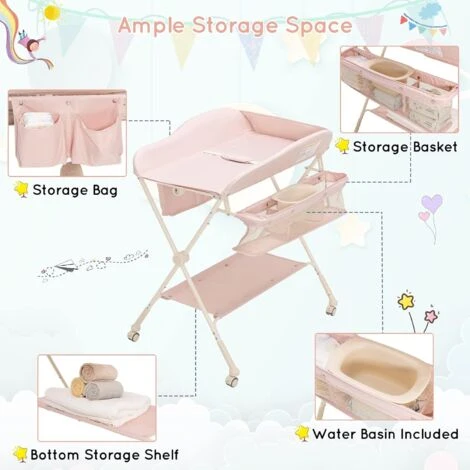 - 【Table à langer multi-usage avec récipient d’eau】cette table à langer pour bébé peut être utilisée pour changer les couches et les vêtements, faire les soins de bébé et masser bébé et le bain de bébé. De plus, la table à langer peut également servir de rangement et la housse en tissu est amovible lorsqu’elle est utilisée comme étendoir à linge. Un récipient d’eau assorti est inclus dans l’emballage, pratique pour nettoyer les fesses de bébé.