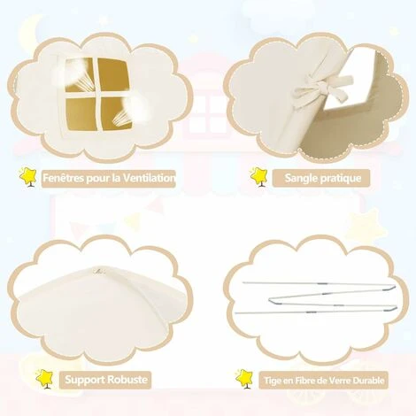 - La fibre de verre de haute qualité soutient fermement la tente de jeu
