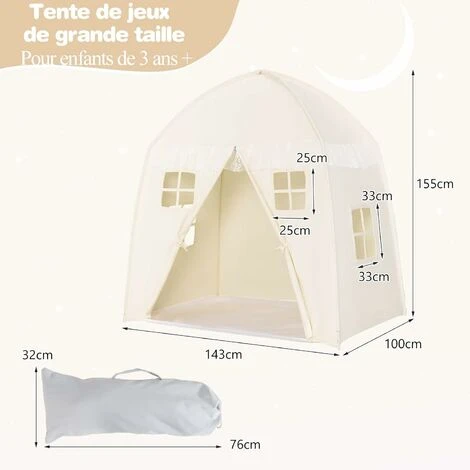 - Espace de jeux spacieux : avec une grande taille de 143 x 100 x 155 cm (L x l x h), cette tente de jeu permet à 3 enfants maximum de jouer ensemble. L’espace spacieux rend possible des jeux comme la maison de jeu. En conséquence, vos enfants peuvent profiter d’un merveilleux moment de jeu avec leur petit partenaire.