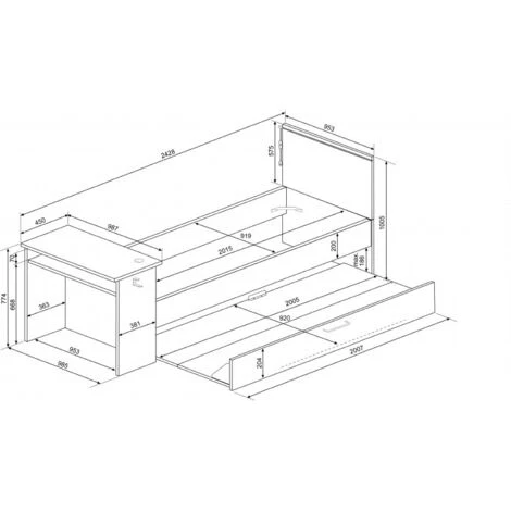 - Structure composée d’un lit supérieur et d’un lit inférieur à roulettes.