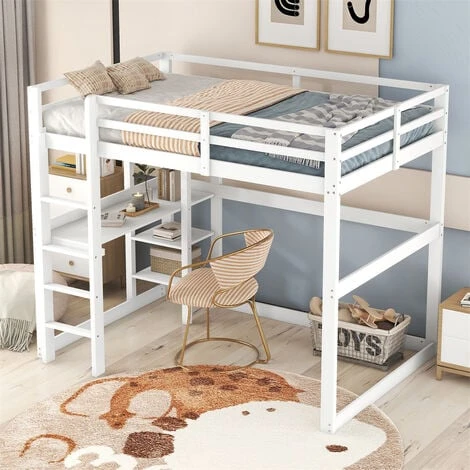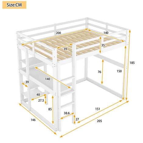 Ce lit mezzanine n’offre pas seulement un espace de couchage pratique, mais constitue également une pièce de décoration élégante et raffinée. La structure est entièrement fabriquée en pin de qualité supérieure et recouverte d’un vernis de haute qualité pour éviter l’usure quotidienne. Le bureau du sommier vous permet d’étudier ou de travailler efficacement, tandis que les étagères latérales à quatre compartiments vous permettent de ranger vos livres, votre papeterie et d’autres objets afin de garder votre bureau bien rangé et d’augmenter votre productivité. Vous pouvez choisir une chaise confortable assortie.