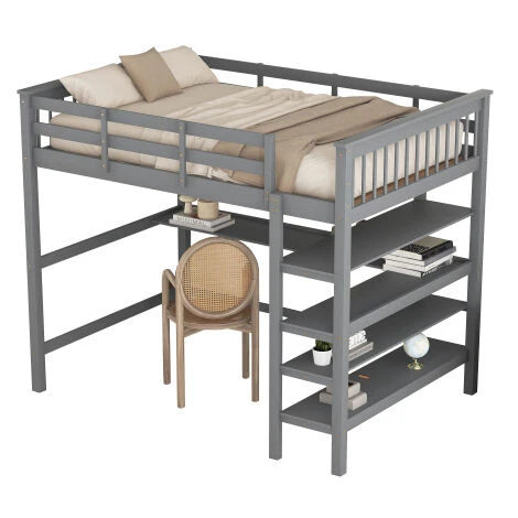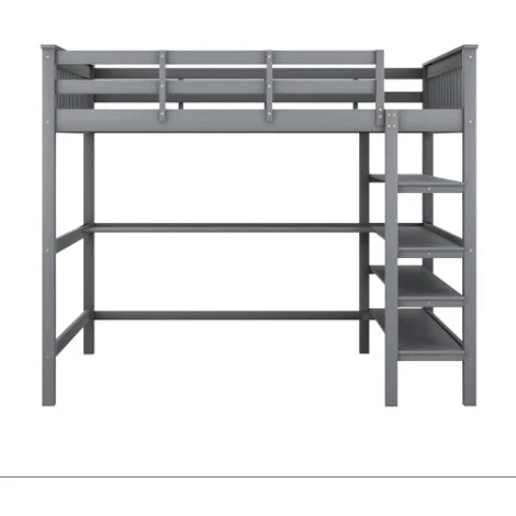 Ce lit mezzanine double traditionnel est fait de pin massif et de MDF de haute qualité. Ce lit comprend un bureau intégré avec des étagères robustes et une surface de travail spacieuse et fonctionnelle sous le lit pour une nuit de sommeil confortable. L’étagère peut également être utilisée comme échelle pour un accès facile au lit. Ce lit mezzanine est doté de lattes de soutien et de rails de protection robustes pour assurer votre confort et votre sécurité. Certainement un excellent ajout à votre chambre.