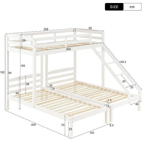 Ce lit superposé triple comprend trois lits simples de 90×200 cm, utilisant l’espace vertical pour offrir des options de placement pratiques et flexibles pour les familles nombreuses et les nuitées. Ce lit peut accueillir 3 personnes pour profiter ensemble.