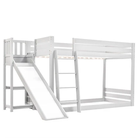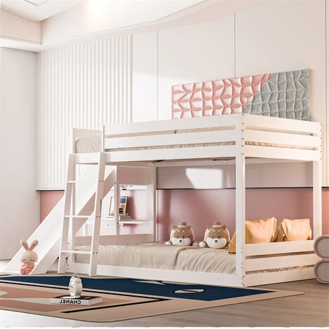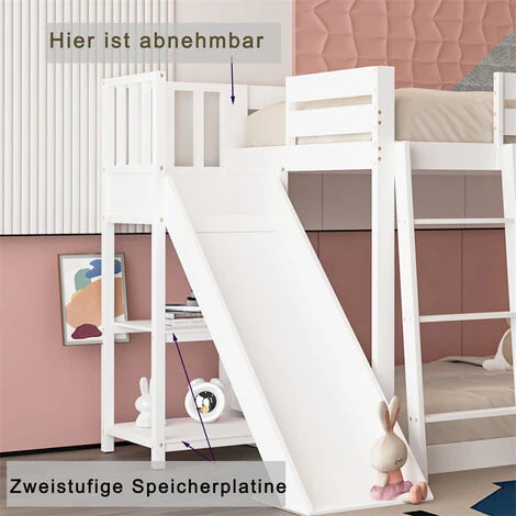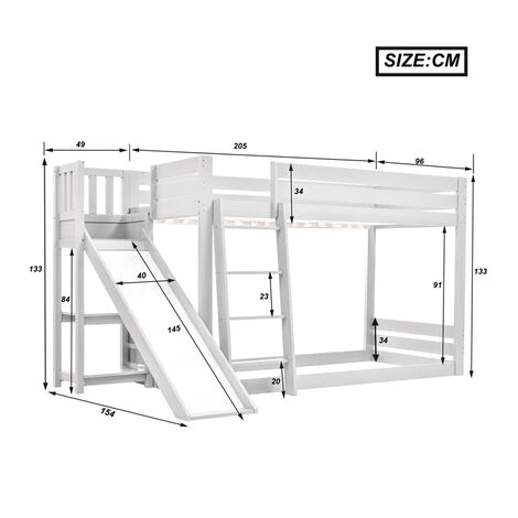Ce lit d’enfant classique à double couche avec étagères est fabriqué en pin de qualité supérieure, qui est écologique et stable. Votre enfant peut utiliser l’échelle pour entrer et sortir du lit ou utiliser le toboggan pour glisser confortablement hors du lit. Le lit supérieur est doté d’une barrière surélevée pour que votre enfant puisse dormir en toute tranquillité.