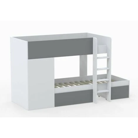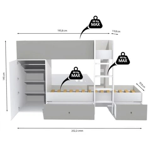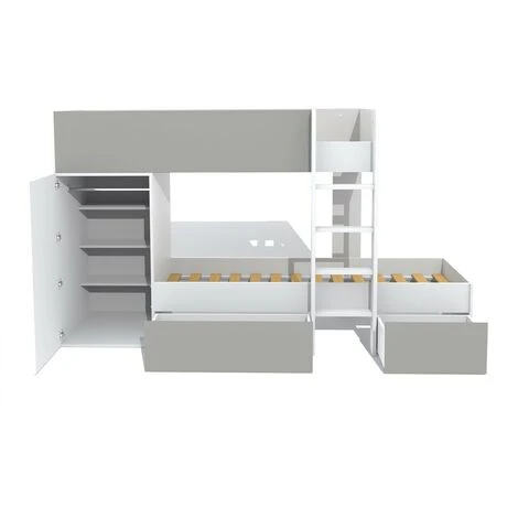 Lit superposé TWIN 90 x 190 cm avec armoire et 2 tiroirs de rangement