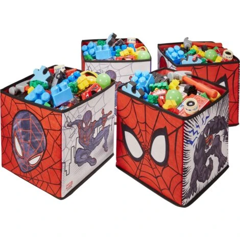 Le personnage mythique de Spiderman décore les cubes de rangement Spiderman. Des motifs sont imprimés sur les 4 côtés des cubes.