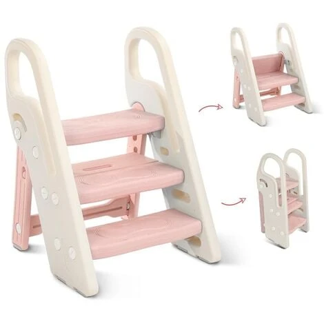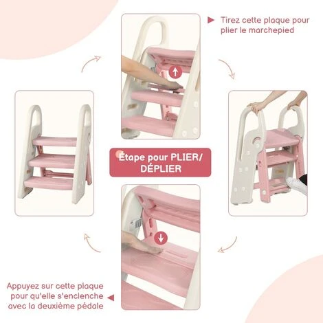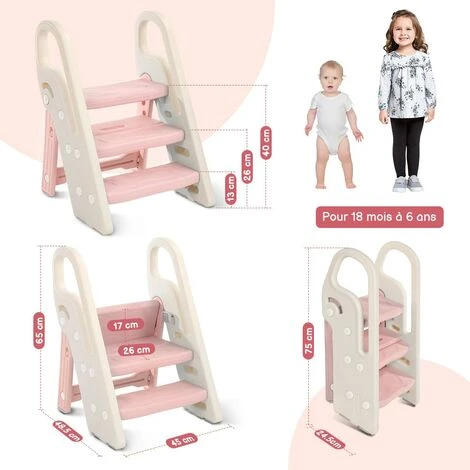 【Unique construction pliable】Ce marchepied enfant léger et réglable pour les enfants âgés de 1,5 ans et plus est uniquement pliable pour un rangement pratique.
