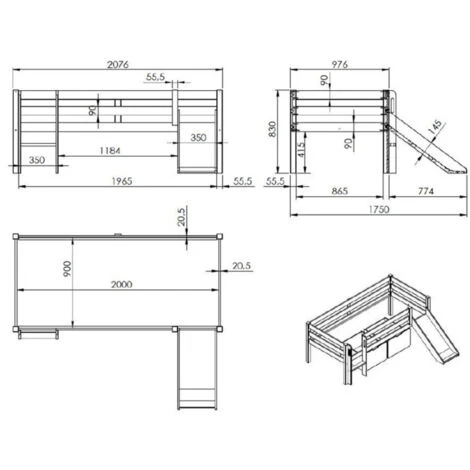 - S’utilise avec le Lot de 2 Tiroirs de Lit Enfant Pino 55x60cm Gris