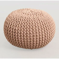 Pouf Rond En Tricot Greicy SKLUM Rose Noisette Ø70 Cm