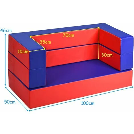 Êtes-vous toujours inquiet pour le petit espace à la maison? Avec notre canapé multifonctionnel avec fonction de 4 en 1, cela peut facilement résoudre vos soucis. Le costume peut être utilisé comme canapé, lit et blocs de construction. Surface de canapé en matériau PU imperméable et respirant et rembourrage EPE résistant aux chocs et à l’humidité. Cela rend le canapé plus confortable et le rend plus agréable au toucher. Les couleurs vives attirent l’attention des enfants et les blocs de construction peuvent aider à développer l’intelligence des enfants.