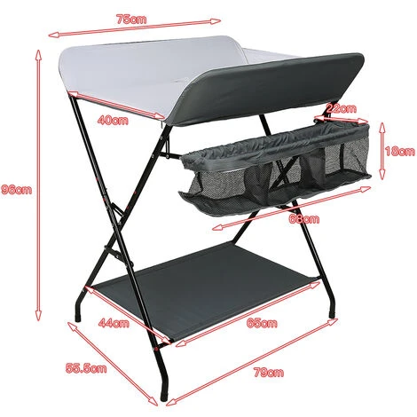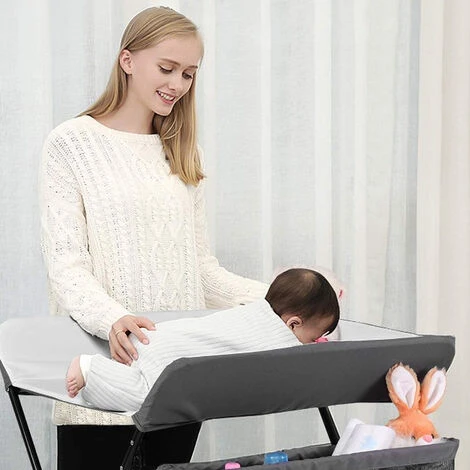 Cette table à langer est robuste et durable. Les parois latérales garantissent que le bébé ne roule pas. Le plateau à langer comporte des compartiments latéraux pour le rangement et un accès facile aux articles pour bébé. Après le changement, vous pouvez la plier et la stocker pour économiser de l’espace, donc la table à langer est parfaite pour les déplacements ou pour une utilisation à la maison. En outre, il y a une étagère au fond pour accueillir des choses comme l’huile pour bébé, couches supplémentaires, etc.