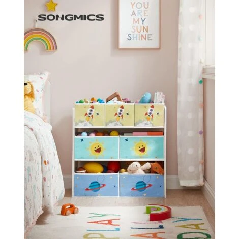- [Charmant et décoratif] Les couleurs vives et les jolis motifs de la galaxie, de soleil et de fusée sur la bibliothèque pour enfants créent une atmosphère joyeuse et ajoutent une touche décorative quel que soit la place que vous lui donnerez