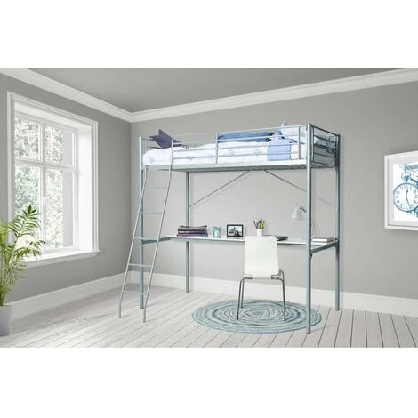 Pour utiliser un maximum d’espace dans votre chambre, choisissez le lit haut avec bureau Leo. Il s’agit d’un lit haut avec une structure métallique et un espace inférieur qui loge un bureau intégré.