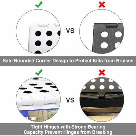 【Tabouret Sécurisé et Antidérapant】 Le marchepied a été approuvé par le certificat EN14183. Features a amélioré la barre de pliage. Les quatre coins arrondis super sécuritaires protègent votre corps des chocs.Les pieds en caoutchouc peuvent être trouvés sur les 4 coins de la marche pour maintenir une position fixe et protéger contre les glissades et les chutes. Tous ces conceptions mettent vos enfants en sécurité en premier.