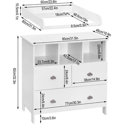 Dimensionde la table à langer60x80x10.5cm (LxPxH) (voir les photos pour les mesures détaillées)